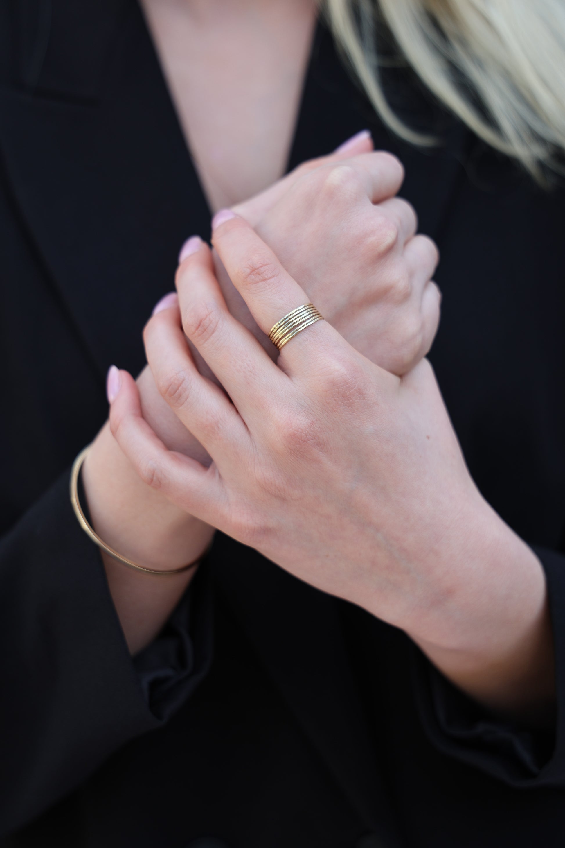 Individually or together – Narrow hammered rings that are subtle on their own, yet create a stunning statement together.