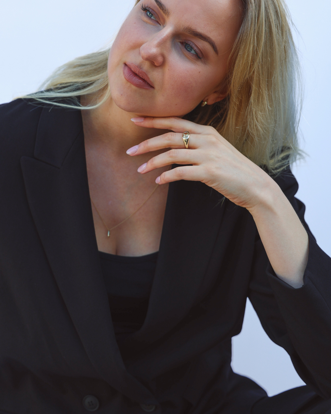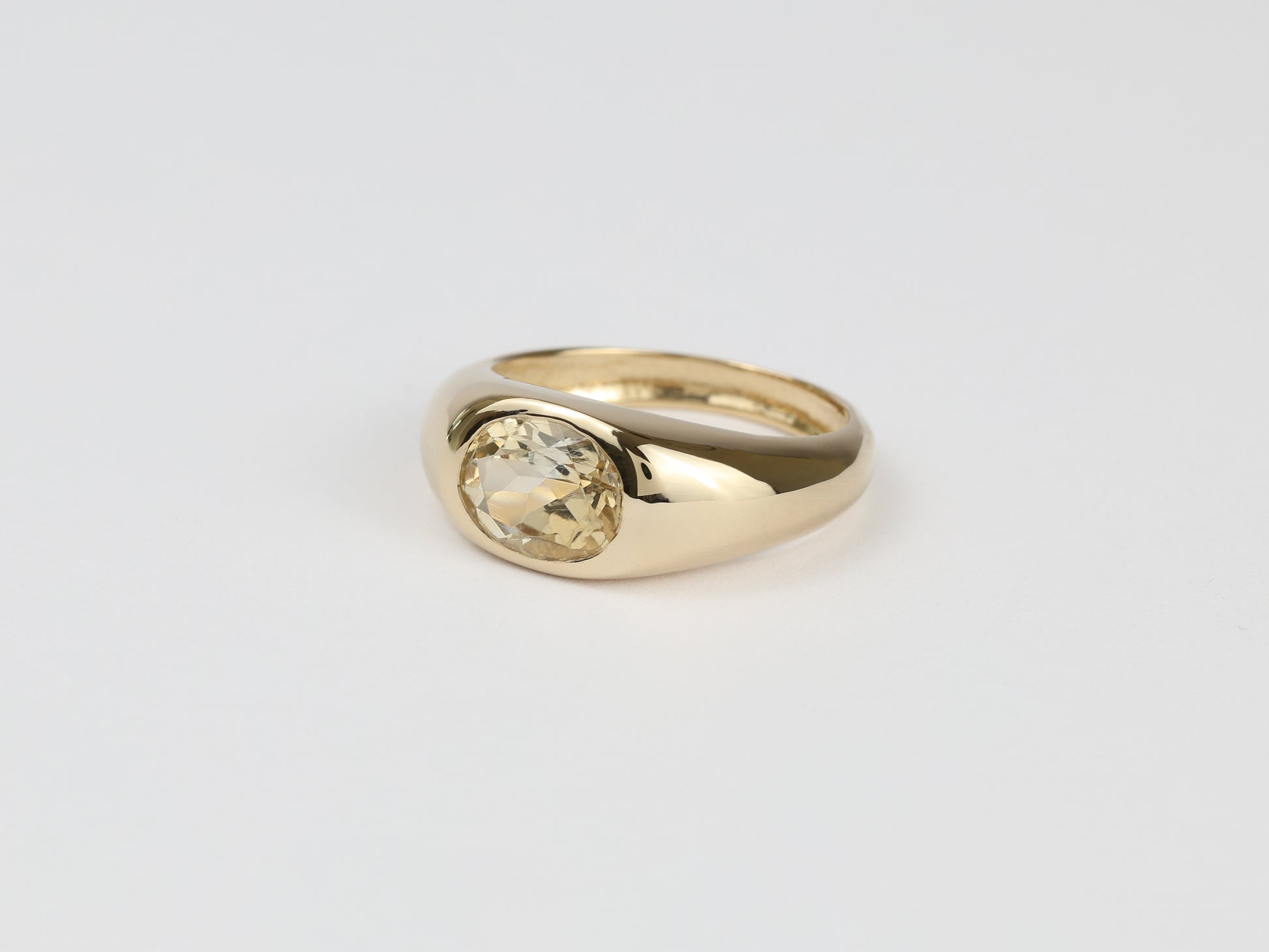 Statement piece – This bold dome ring in 14k gold is anything but modest. The warm citrine blends beautifully with the gold, making this piece a true eye-catcher.
